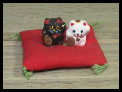 < Back Keychains & miniaturesFun-sized nekos that can travel with you! Two tiny nekos from Ebay. When held up to the light, you can see a tiny picture in the hole! Kitsune (fox) neko. Purchased at CAM International Market in Cincinnati.